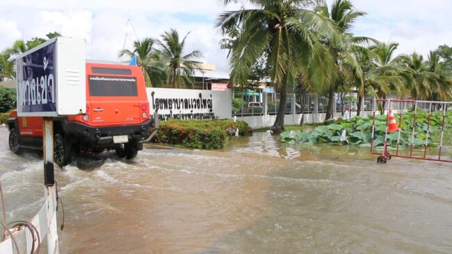 ขอนแก่น-น้ำท่วมโรงพยาบาลแวงใหญ่ ระดับน้ำสูงขึ้นต่อเนื่องหลังจากมีฝนตกลงมาอย่างหนักติดต่อกันหลายวัน ระดมกำลังทำเป็นแนวรั้ว กั้นไม่ให้น้ำเข้า ยาวประมาณ 150 เมตร ใช้ถุงบิ๊กแบ็กประมาณ 200-300 ถุง