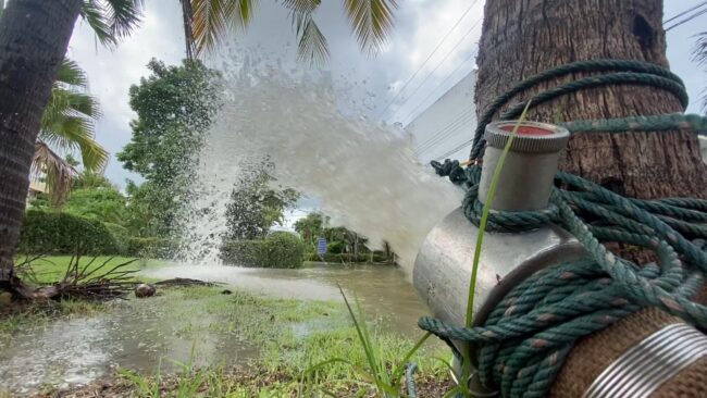 “ปัญหาน่าจะเกิดจากการที่บ้านเมือง เจริญรุ่งเรืองกว่าในอดีต ชาวบ้าน สร้างบ้านถมที่ใคร ที่มัน ปิดกั้นทางน้ำ มีการทำถนนที่ดีและสูงขึ้น แหล่งน้ำธรรมชาติยังเหมือนเดิม เมื่อฝนตกลงมาหนัก น้ำฝนเยอะ น้ำจึงท่วมในพื้นที่ ส่วนที่บ้านตัวเอง เปิดขายอาหารตามสั่ง ก๋วยเตี๋ยว แต่น้ำเอ่อท่วมมาสองวันแล้ว ขายอาหารไม่ได้ จึงต้องปิดร้าน และจะเปิดขายเมื่อน้ำแห้งแล้ว”