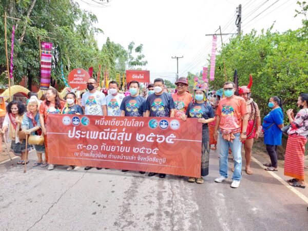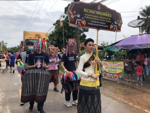 เริ่มแล้วขบวนพาเหรดสีสันสนุกสนานกับการแห่ผีสุม งานประเพณีบุญเดือนสิบ ปีที่ 3 ประจำปี 2565 ที่จัดขึ้นที่วัดสมศรี บ้านเสี้ยวน้อย ตำบลบ้านเล่า อำเภอเมือง จังหวัดชัยภูมิ