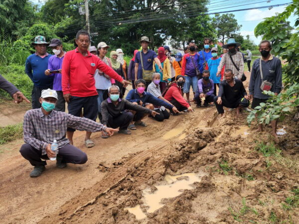 ซึ่งมีพื้นที่การเกษตรนับหมื่นไร่ได้ร้องทุกข์ว่าชาวบ้านจาก 5 หมู่บ้าน 2 ตำบล ซึ่งใช้ถนนเลียบคันคลองชลประทาน ซี35 เป็นเส้นทางคมนาคมเข้า-ออกหมู่บ้าน รวมถึงใช้ถนนเส้นนี้เป็นเส้นทางขนส่งพืชผลทางการเกษตรเพื่อนำไปขายที่ตลาดและที่โรงสี แต่ปรากฏว่าถนนดังกล่าวขาดการเหลียวแลจากส่วนราชการที่เกี่ยวข้องพอฝนตกลงมาถนนก็เละ เป็นหลุมเป็นบ่อ มีแต่ขี้โคลน ทำให้ไม่สามารถขนส่งพืชผลทางการเกษตรได้สร้างความเดือดร้อนเป็นเช่นนี้มานานหลายปี
