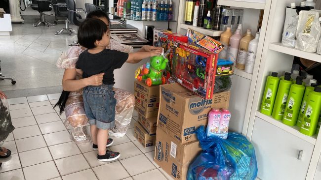 ด้าน น.ส.อาพร จันทรัตน์ เจ้าของร้านเสริมสวย ซึ่งเป็นหนึ่งที่ช่วยดูแลน้องฟลุ๊ค กล่าวว่า เพื่อนบ้านแถวนี้รวม 4 คน ได้ช่วยกันเลี้ยงดูมากว่า 7 เดือน โดยกลางวันก็จะมาวิ่งเล่นที่ร้านเสริมสวย ส่วนกลางคืนก็จะไปนอนที่บ้านข้าง ๆโดยก่อนหน้านี้แม่ของน้องฟลุ๊ค เช่าห้องอยู่แถวนี้ แต่ว่าในช่วงโควิด19 ตกงานเพื่อนบ้านเห็นใจ จึงช่วยกันเลี้ยงดูน้องฟลุ๊คเพื่อให้แม่ไปหางานทำ โดยเมื่อ 7 เดือนก่อน แม่ได้ขึ้นไปทำงานโรงงานที่กรุงเทพฯ แต่จนถึงตอนนี้ก็ยังไม่กลับมา และไม่สามารถติดต่อได้เพื่อนบ้านจึงต้องช่วยดูแลน้องฟลุ๊คมาถึงตอนนี้เพื่อรอให้แม่กลับมารับก็ยังหวังว่าแม่จะกลับมาซึ่งน้องฟลุ๊คก็ยังคงรอแม่กลับมารับทุกวัน