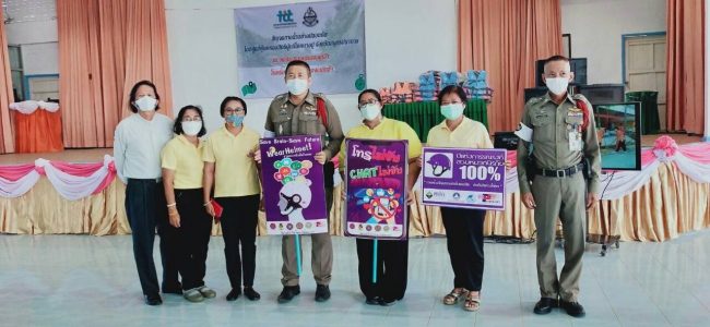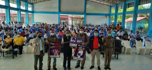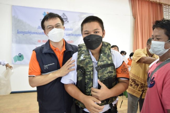 สภาองค์กรของผู้บริโภค สป. เครือข่ายงดเหล้า สป. สพฐ.สป.1 คปภ. ตร. รร.ป้อมพระจุล มอบเสื้อชูชีพ รณรงค์การส่งเสริมความปลอดภัยทางน้ำ
