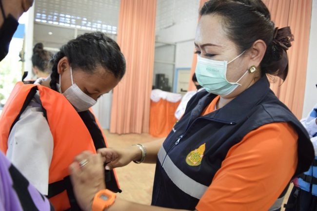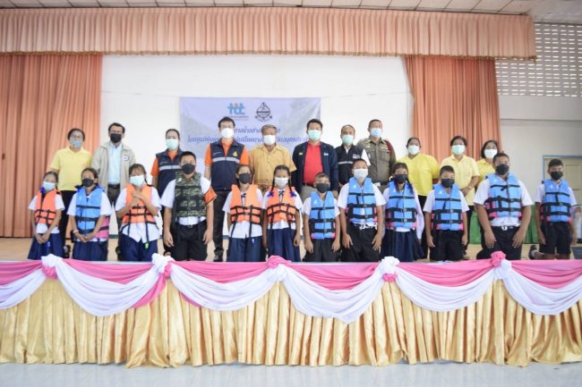 สภาองค์กรของผู้บริโภค องค์กรเครือข่ายงดเหล้า สพฐ.สป.1 ตร. รร.ป้มพระจุลมอบเสื้อชูชีพ รณรงค์การส่งเสริมความปลอดภัยทางน้ำ
