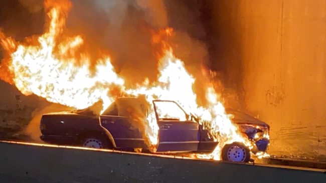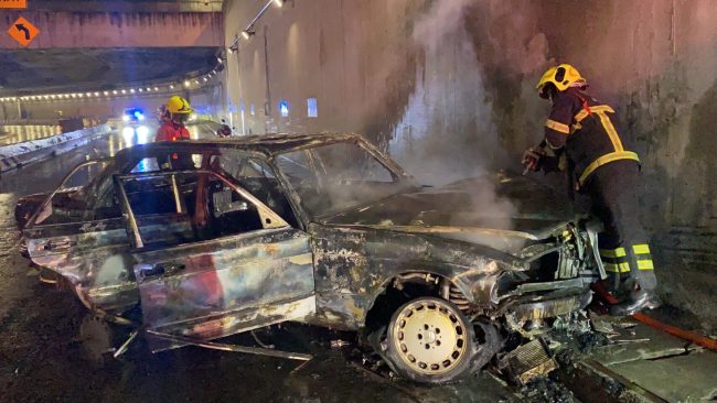 ที่เกิดเหตุพบ รถเบนซ์ w126 สีน้ำเงิน ทะเบียน ธจ 4855 กทม. หน้ารถพุ่งชนกำแพงปูนอุโมงค์ทำให้เพลิงไหม้โหมรุนแรง เจ้าหน้าที่จึงฉีดน้ำดับไฟใช้เวลาประมาณ 15 นาทีเพลิงสงบลง โดยที่รถเสียหายหมดทั้งคัน