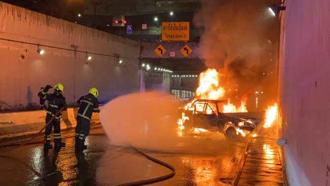 พ.ต.ต.พิพัฒน์พงศ์ เพิ่มพูล สารวัตร(สอบสวน)สน.บางเขน ได้รับแจ้งเมื่อเวลา 01.50 น.วันที่ 24 ก.ย.65 เกิดเหตุเพลิงไหม้รถยนต์ ภายในอุโมงค์ทางลอดแยกเกษตร ฝั่งมุ่งหน้าถนนงามวงศ์วาน แขวงลาดยาว เขตจตุจักร กทม. ตรวจสอบพร้อมประสานสถานีดับเพลิงลาดยาว นำรถน้ำ 1 คัน และอาสาสมัครมูลนิธิป่อเต็กตึ๊ง