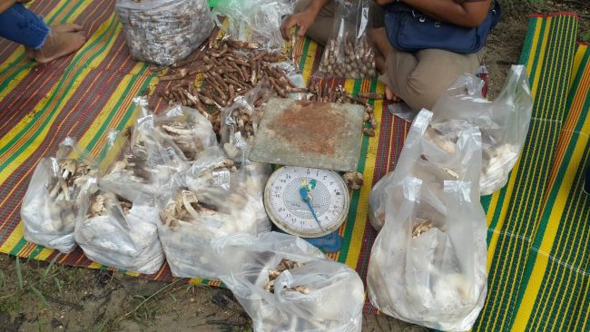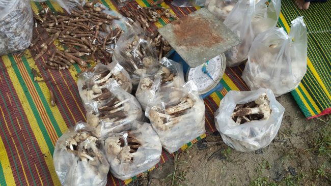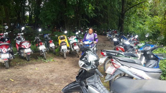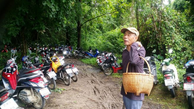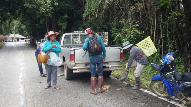 อุทัยธานี-เทศกาลกินเจ!!ชาวบ้านขับจยย.หลายร้อยคัน จอดข้างป่า นำกล้วยไหว้เจ้าที่ขอให้หมานๆแห่เข้าป่าหาเห็ดโคนในป่าและเดินเท้าไปหลายกิโลหาเห็ดโคนมาขายหารายได้ แม่ค้านั่งรอซื้อเห็ดโคนถึงในเขตป่า เขตป่าชุมห้วยขาแข้ง