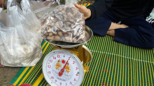 ได้พบกับชาวบ้านรายหนึ่งชื่อป้าสร อายุ 64 ชาวอำเภอลานสัก จังหวัดอุทัยธานี ก่อนเดินเข้าไปในป่า ตัวป้าได้นำกล้วยและของเซ่นมาไหว้เจ้าที่ในป่าเป็นประจำทุกปี เพื่อขอให้หมานๆขอให้หาเห็ดโคนได้หลายสิบโล ตัวป้าก็เชื่อมาตลอดทุกปี บางคนก็มาตั้งแต่ใกล้ฟ้าสว่าง บางคนก็มาสายๆ แต่ก็ได้เห็ดกลับบ้านไม่ต่ำกว่าคนละ 4-5 กิโลกรัม