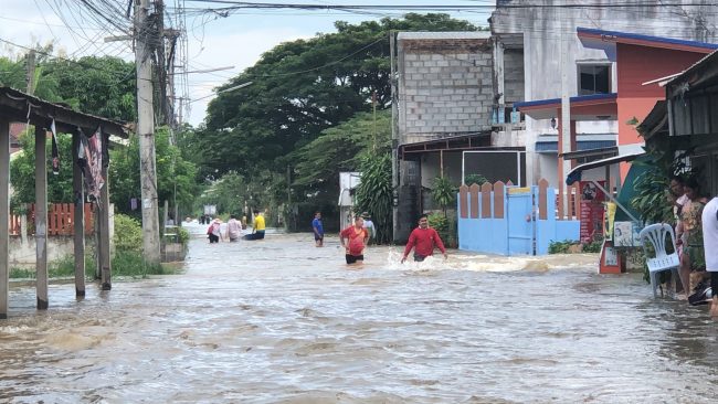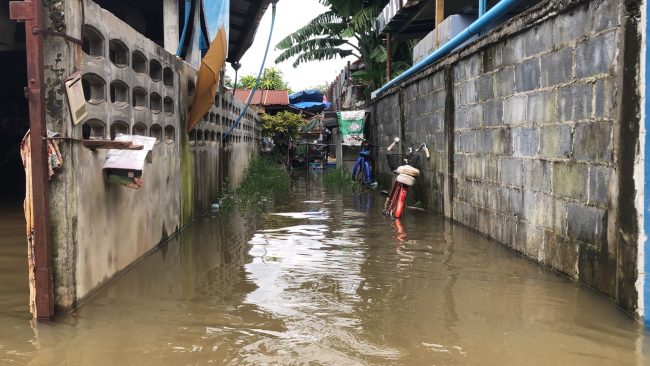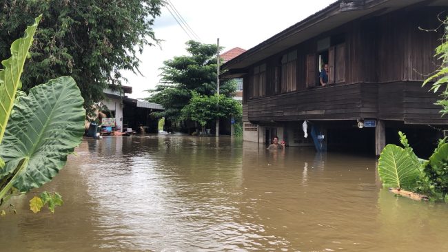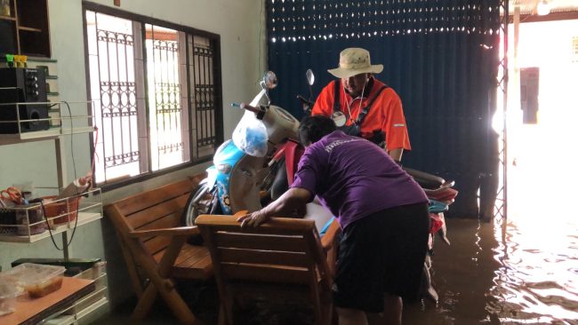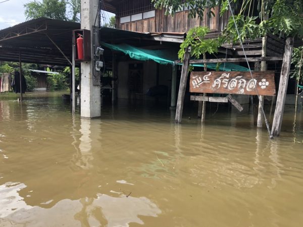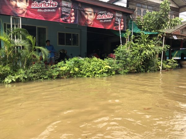 นางพิมพ์ใจ วัชรมณเฑียร ประธานชุมชนโนนสมอ เผยว่าที่ผ่านมาชุมชนโนนสมอจะเป็นจุดแรกที่จะต้องถูกน้ำท่วมก่อนเนื่องจากชุมชนโนนสมอ เป็นชุมชนที่ติดกับริมคลองห้วยเสวยซึ่ ซึ่งหากมีน้ำล้นทะลักออกมาก็จะท่วมและจะอยู่นานกว่าสัปดาห์ซึ่งที่ผ่านมาหลังจากพายุโนรูได้พัดผ่านมานั้น ทางชุมชนทางชุมชนโนนสมอก็ ก็มีน้ำเอ่อทะลักเข้าท่วมชุมชนมาแล้วหนึ่งรอบ และครั้งนี้และครั้งนี้ก็ถือว่าเป็นรอบที่สองที่น้ำจากคลองห้วยเสียวได้ทะลักขึ้นมาและหนักกว่าครั้งแรกทั้ง ทั้งยังมีกระแสน้ำที่ไหลเชี่ยวทำให้เข้าไปแจกอาหารให้กับชาวบ้านที่อยู่ในจุดที่ลึกกว่า 2 เมตรไม่ได้