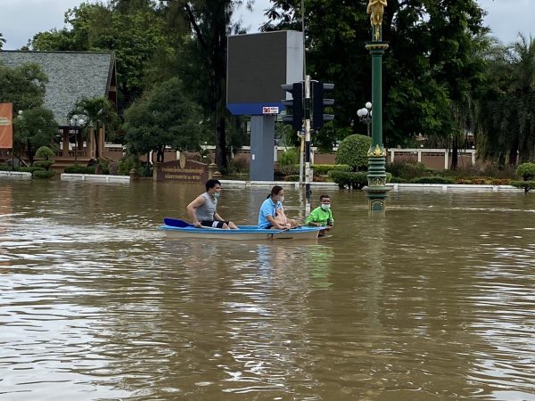 ล่าสุดช่วงเช้าตรู่วันนี้(2 ต.ค.2565 )ได้มีมวลน้ำที่ได้ไหลหลากทะลักทุกทิศทางเข้าท่วมตัวเมืองโซนเศรษฐกิจย่านกลางเมืองชัยภูมิ มาต่อเนื่อตลอดทั้งคืนรวมถึงมีฝนตกลงมาในช่วงค่ำอีก ทำให้ได้มีปริมาณน้ำเพิ่มขึ้นทั้งขยายวงกว้างท่วมสูงขึ้นส่งผลกระทบ เกิดน้ำท่วมขังสูงในเขตเทศบาลเมืองชัยภูมิ ทั้ง 25 ชุมชน ชาวบ้านได้รับผลกระทบและเดือดร้อนหนัก ชาวบ้านแล้ว ทั้งยังคงมีมวลน้ำป่าที่กำลังไหลลงมาจากอ่างเก็บน้ำลำประทาว และห้วยยางบ่าเข้าสมทบอีก ซึ่งจะทำให้มีมวลน้ำมหาศาล เข้าท่วมพื้นที่ อ.เมืองชัยภูมิ และเขตเทศบาลเมืองชัยภูมิต่อเนื่อง ทำให้ขณะนี้ในเขตเทศบาล ถนนทุกสายจมอยู่ใต้น้ำ ระดับน้ำท่วมสูง 40-80 ซ.ม.ในพื้นที่ลุ่มต่ำ รถเล็กไม่สามารขับผ่านไปได้ ถนนหลายสายย่านเศรษฐกิจใจกลางเมืองชัยภูมิถูกน้ำท่วม ศูนย์ราชการหลายหน่วยงานถูกน้ำท่วมสูง โดยเฉพาะถนนจาก 5 แยกโนนไฮ-อนุสาวรีย์เจ้าพ่อพญาแล หน้าโรงพยาบาลชัยภูมิ หน้าสถานีตำรวจภูธรเมืองชัยภูมิ และ ตลาดสดเทศบาล น้ำเข้าท่วมอย่างรวดเร็ว ซึ่งในขณะนี้การเดินทาง สัญจรไปมาในตัวเมืองชัยภูมิ ต้องใช้เรือในการเดินทาง ซึ่งจะมีเจ้าหน้าที่จากหลายหน่วยงานจากหลายมูลนิธิฯได้เข้ามาช่วย เพื่อให้การช่วยเหลือนำส่งผู้ป่วย หรือ เจ้าหน้าที่ที่จะเข้าพื้นที่ไปทำงาน