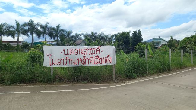 น่าน- ชาวบ้านดอนสวรรค์ หมู่ที่ 8 ต.ผาสิงห์ อ.เมืองน่านสุดทน ร้านเหล้าเปิดเพลงเสียงดังกระหึ่มจนดึกดื่นทุกคืน ขึ้นป้ายเรียกร้องขอความสงบคืนตลอดเส้นทางเข้าหมู่บ้าน