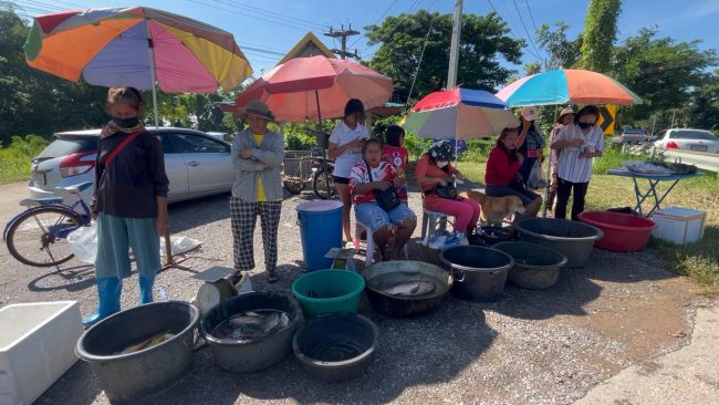 ที่บริเวณทางเข้าหมู่บ้านบึงอีเฒ่า ต.ศิลา อ.เมือง จ.ขอนแก่น พบว่าชาวบ้านในหมู่บ้านต่างพากันนำปลามาวางจำหน่ายเป็นจำนวนมาก โดยเป็นปลาที่แต่ละครอบครัวออกไปจับมาในช่วงที่น้ำท่วมหมู่บ้านเพื่อหารายได้เลี้ยงครอบครัว เนื่องจากไม่สามารถทำนาและ ทำสวนได้ในช่วงน้ำท่วม
