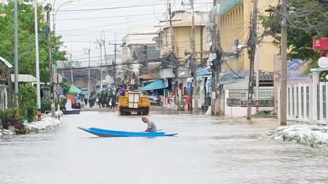 เมื่อวันที่ 15 ตุลาคม 65 สภาพน้ำท่วม ที่ อ.บางปะอิน จ.พระนครศรีอยุธยา ในส่วนของ พื้นที่ติดกับแม่น้ำเจ้าพระยาโดยเฉพาะฝั่ง ทิศตะวันออก ในเขต ต.บ้านเลน อ.บางปะอิน ซึ่งเป็นชุมชนเมืองขนาดใหญ่ และเป็นชุมชนเก่าแก่ดั้งเดิม ของอำเภอ ใกล้กับพระราชวังบางปะอิน พบว่าชุมชนและตลาด ถูกน้ำท่วมสูงมากแล้ว สาเหตุเพราะว่า น้ำจากเจ้าพระยา ไหลรอดทะลักเข้าตามท่อระบายน้ำต่างๆหลายแห่งจนท่วมสูง