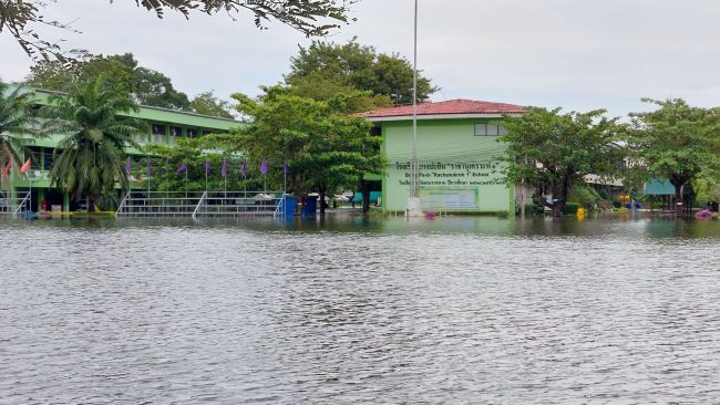 พระนครศรีอยุธยา-น้ำท่วมโรงเรียนบางปะอินราชานุเคราะห์ 1 อย่างหนัก รวมถึงท่วมชุมชนและตลาดเก่าติดแม่น้ำเจ้าพระยา ส่วนพระราชวังบางปะอินสามารถป้องกันน้ำท่วมได้