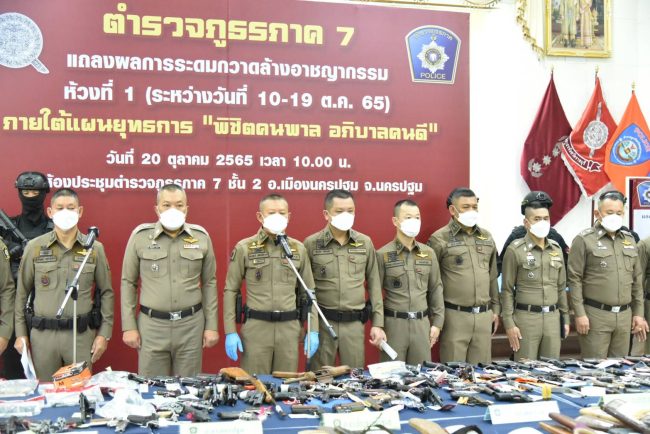 นครปฐม-ผบช.ภ.7 แถลงผลกวาดล้างอาชญากรรม ภายใต้ยุทธการ “พิชิตคนพาล อภิบาลคนดี “แค่ 10 วัน ของกลางเพียบ “ปืนเถื่อน” 297 กระบอก และยาเสพติดอีกจำนวนมาก
