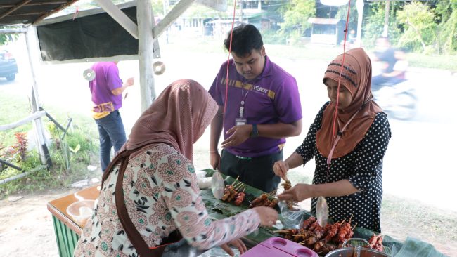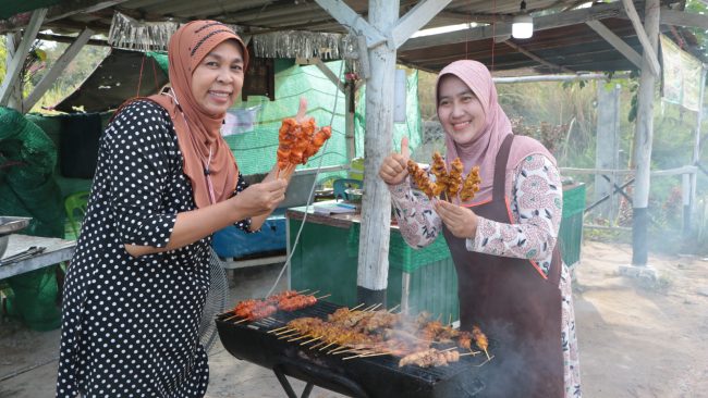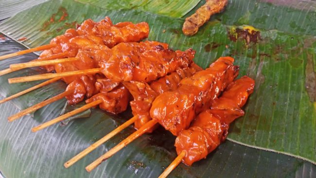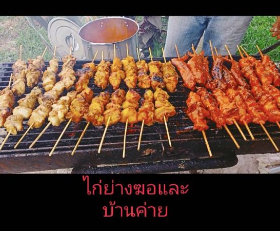 ไก่ย่างมี 2 ชนิด คือ ไก่ย่างขมิ้นสีเหลือง ตีนไก่ย่าง หนังไก่ย่าง ขาย 10 บาท เนื้อติดกระดูก ราคา 15 บาท และไก่กอและ ราคา 20 บาททุกไม้ (ปีก เครื่องในไก่ หน้าอก) ข้าวเหนียว ถุงละ 5 บาท