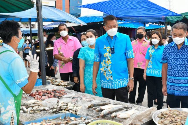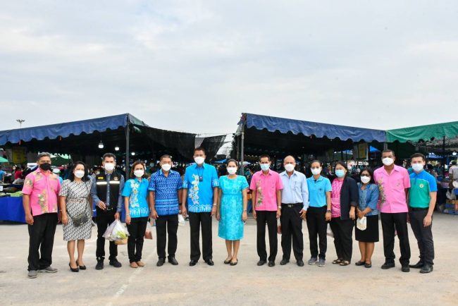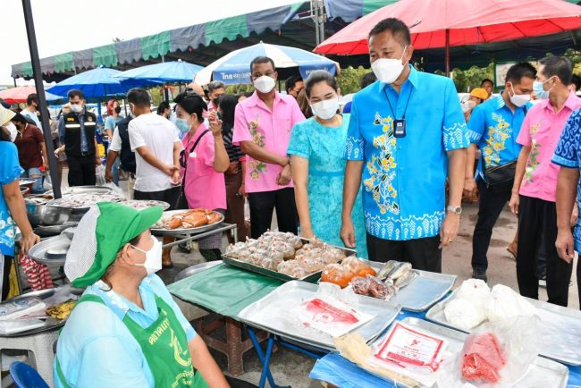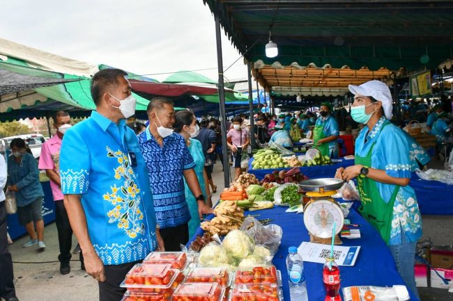 เมื่อเวลา 07.30 น. วันที่ 21 ตุลาคม 2565 นายธวัชชัย ศรีทอง ผู้ว่าราชการจังหวัดชลบุรี พร้อมด้วย นางสาวประภัสรา ศรีทอง นายกเหล่ากาชาดจังหวัดชลบุรี นายสุคนธ์ สุวรรณศักดิ์สิน นายอำเภอเมืองชลบุรี หน่วยงานสังกัดกระทรวงเกษตรและสหกรณ์ในพื้นที่จังหวัดชลบุรี และหน่วยงานที่เกี่ยวข้อง ร่วมลงพื้นที่ตรวจเยี่ยมตลาดนัดเกษตรกร เพื่อสร้างความมั่นใจให้กับผู้บริโภค และให้กำลังใจเกษตรกรผู้จำหน่ายสินค้า ณ บริเวณสนามหน้าที่ว่าการอำเภอเมืองชลบุรี จังหวัดชลบุรี