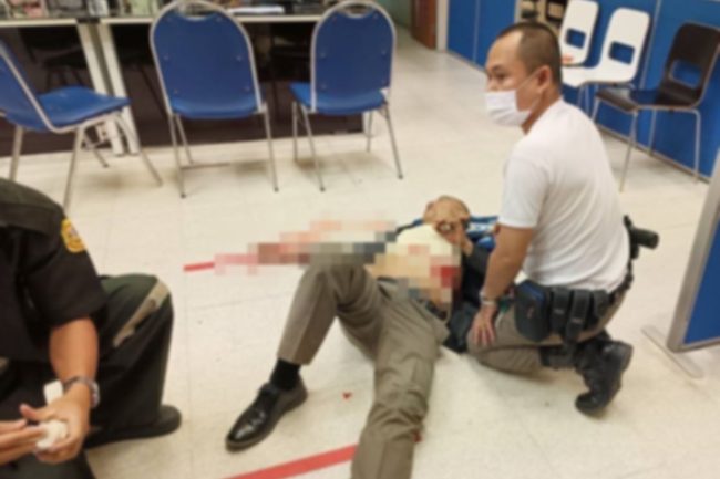 ก่อนจะหอบร่างที่ได้บาดเจ็บวิ่งเข้าไปบริเวณห้องรับแจ้งความ (จุดวันสต็อปเซอร์วิส) โดยมีดาบตำรวจ ผู้ช่วยร้อยเวรเข้ามาประคองร่างที่ถูกยิงนอนอยู่ที่พื้น เจ้าหน้าที่ตำรวจที่เห็นเหตุการณ์เข้าเจรจากับคนร้าย ยอมจำนนวางอาวุธปืน จากนั้นได้เข้าควบคุมตัว เบื้องต้นแจ้งข้อหาพยายามฆ่าเจ้าหน้าที่ขณะปฏิบัติหน้าที่ มีและพกพาอาวุธเข้าไปในเมือง หมู่บ้าน ทางสาธารณะโดยไม่ได้รับอนุญาต