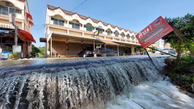 แต่ไม่มีการแก้ไข สาเหตุเพราะว่าคน 2 ฝ่ายคิดเห็นไม่ตรงกัน โดยฝ่ายตึกอาคารพาณิชย์ ที่ตั้งติดอยู่กับทางน้ำไหลเข้า ไม่ยินยอมให้ทำคันล้อมป้องกันน้ำไหล ตรงหน้าอาคารพาณิชย์ติดกับถนน