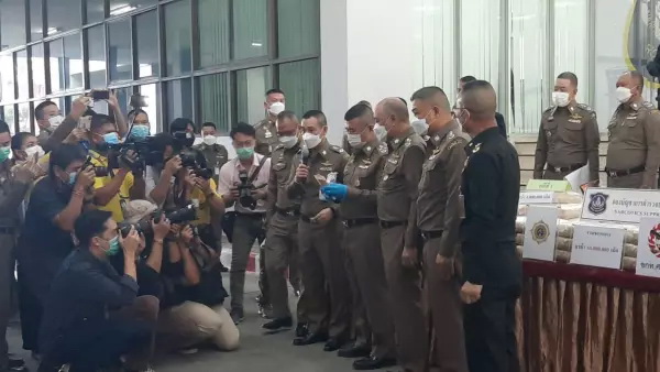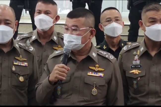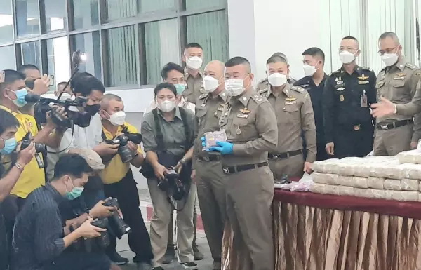 เมื่อเวลา 10.30 น. วันที่ 24 ต.ค. 65 ที่กองบัญชาการตำรวจปราบปรามยาเสพติด (บช.ปส.) พล.ต.อ.ดำรงศักดิ์ กิตติประภัสร์ ผบ.ตร. พร้อมด้วย พล.ต.อ.ชินภัทร สารสิน รอง ผบ.ตร./ผู้อำนวยการศูนย์ป้องกันและปราบปรามยาเสพติด สำนักงาน ตำรวจแห่งชาติ (ศอ.ปส.ตร.), พล.ต.ท.สรายุทธ สงวนโภคัย ผบช.ปส., พล.ต.ต.ธนรัชน์ สอนกล้า ผบก.ปส.2 และ พล.ต.ต.เอกภพ อินทวิวัฒน์ผบก.ขส. ร่วมกันแถลงผลการกวาดล้างเครือข่ายยาเสพติดพื้นที่อีสาน 2 เครือข่าย