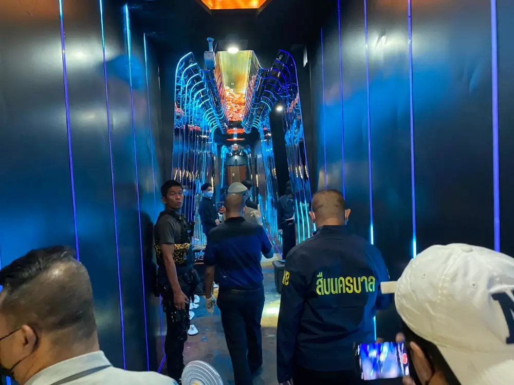 พล.ต.ต.นิติธร เปิดเผยว่า จากการเข้าค้นในวันนี้สืบเนื่องจาก นโยบายของ พล.ต.อ.ดำรงค์ศักดิ์ กิตติประภัสร์ ผบ.ตร. ในการกวาดล้างยาเสพติดในแหล่งสถานบริการ รวมถึงการมั่วสุมเสพยาเสพติดตามสถานบันเทิงในพื้นที่อย่างเด็ดขาด ทางเจ้าหน้าที่จึงได้บูรณาการกับทุกภาคส่วน จนทราบว่า สถานที่แห่งนี้เปิดทำการเป็นสถานบริการ ร้านคาราโอเกะ ให้บริการกลุ่มนักท่องเที่ยวชาวต่างชาติโดยเฉพาะชาวจีน โดยไม่ได้รับอนุญาต อีกทั้งยังสืบทราบว่า สถานบันเทิงดังกล่าว มีพฤติการณ์ลักลอบจำหน่ายยาเสพติดให้แก่ลูกค้าที่มาใช้บริการ จัดสถานที่ให้มีการมั่วสุมยาเสพติด อีกทั้งยังมีการให้บริการรับฝากยาเสพติดที่ใช้บริการไม่หมด และ จัดให้มีการเล่นพนันกันอย่างไม่เกรงกลัวต่อเจ้าหน้าที่และกฎหมาย ตำรวจจึงได้ขอหมายค้นของศาลอาญากรุงเทพใต้ ที่ 283/2565 ลงวันที่ 25 ต.ค.65 เพื่อเข้าตรวจสอบอาคารดังกล่าว