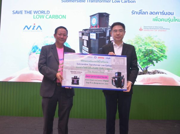 สำหรับหม้อแปลงใต้น้ำ “ซับเมอร์ส Low Carbon” หม้อแปลงใต้น้ำ ติดตั้งใต้ดิน เกิดจากการวิจัยและพัฒนาของ บริษัท เจริญชัยหม้อแปลงไฟฟ้า จำกัด ได้สร้างผลงานโครงการสนับสนุนกิจกรรมลดก๊าซเรือนกระจก (LESS) ประเภทด้านการเพิ่มประสิทธิภาพพลังงาน ของหม้อแปลง Low Carbon ที่มีระบบบริหารจัดการพลังงานสิ้นเปลืองแบบเรียลไทม์ ซึ่งเป็นเทคโนโลยีที่ช่วยบริหารจัดการพลังงานไฟฟ้าภายในสถานประกอบการให้อยู่ในระดับพลังงานที่เหมาะสมและเสถียรภาพ