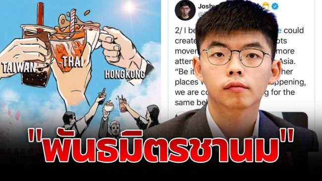 นิสิตจุฬาฯ กล่าวว่า การกระทำของอบจ.และกลุ่มพันธมิตรชานมฯ นอกจากแสดงพฤติกรรมที่ไม่เหมาะสมที่ออกมาเคลื่อนไหวทางการเมืองในวันครบรอบวันสวรรคตของในหลวง รัชกาลที่ 9 แล้ว ยังได้โพสต์รูปภาพโจชัว หว่อง ในลักษณะคล้ายในหลวง รัชกาลที่ 10 เนื่องจากมีคำว่า “ทรงพระเจริญ” ถือเป็นเรื่องที่ไม่บังควร ทำให้ตนเองมีความรู้สึกสะเทือนจิตใจ เนื่องจากสถาบันพระมหากษัตริย์อันเป็นที่เคารพรักของคนไทยกำลังถูกจาบจ้วง ล่วงละเมิดจากผู้ไม่หวังดี