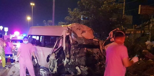 ชลบุรี-สลดบายพาส รถตู้ พุ่งข้ามเกาะกลางถนน ในพื้นที่ อ.เมือง จ.ชลบุรี ชนรถพ่วง 18 ล้อ พังยับเยิน เสียชีวิต 3 ราย หญิงนั่งมาในรถบาดเจ็บ 6 คน เจ้าหน้าที่ คาดหลับใน