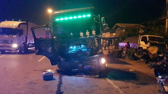 นอกจากนี้ใกล้กันพบรถบรรทุก 6 ล้อ ยี่ห้อฮีโน่ ทะเบียน 70-0832 มหาสารคาม ด้านหน้าพัง สภาพพุ่งชนเข้าไปในสวนจำหน่ายต้นไม้ ทั้งนี้ ผู้ชายที่เสียชีวิตข้างรถตู้เป็นคนขับรถตู้ ส่วนคนขับรถพ่วงร่างร่วงลงมาจากรถถูกรถตัวเองเหยียบเสียชีวิตท้ายรถพ่วง