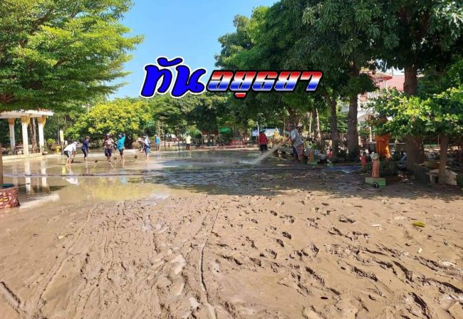 โดยที่วัดตะกู อำเภอบางบาล ซึ่งเคยถูกน้ำท่วม สูงสุดในปีนี้ถึง 3 เมตร ซึ่งวันนี้ระดับน้ำลดลง จนพื้นลานวัด ได้โผล่พ้นน้ำแล้ว แต่พบว่า มีดินโคลนตะกอนทราย จำนวนมาก ทับโถมอัดแน่นอยู่เต็มพื้นที่ลานวัด จนมองดูคล้ายกับทะเลโคลน