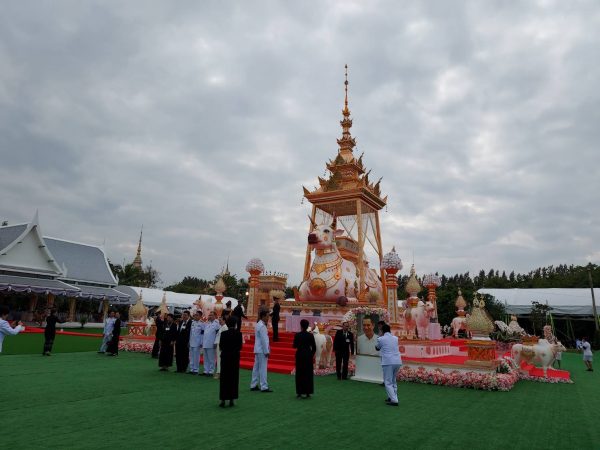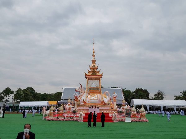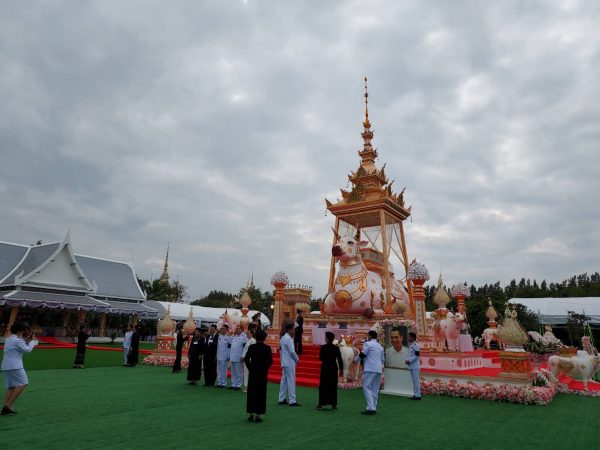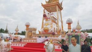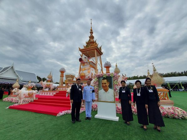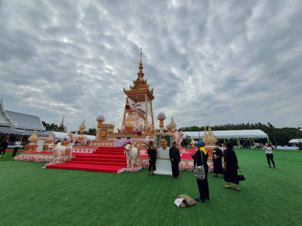 บรรยากาศในงานพิธีพระราชทานเพลิงศพ “สรพงศ์ ชาตรี” ศิลปินแห่งชาติ สาขาการแสดง และพระเอกในดวงใจตลอดกาลของประชาชนคนไทย ในช่วงบ่ายวันนี้ (6 พฤศจิกายน 2565) มีที่มูลนิธิสมเด็จพระพุฒาจารย์ (โต พรหมรังสี) เมตตาบารมี อ.สีคิ้ว จ.นครราชสีมา ประชาชนจากทั่วทุกสารทิศ และเเฟนหนัง-แฟนละคร เดินทางมาร่วมไว้อาลัยต่อการจากไปของพระเอกสรพงศ์ฯ กันเป็นจำนวนมาก และพร้อมใจถ่ายภาพกับรูปภาพของ “สรพงศ์ ชาตรี” หน้าเมรุชั่วคราว ซึ่งจัดทำขึ้นเป็นเมรุขนาดใหญ่ มีสัญลักษณ์เป็นลายไทย วัฒนธรรมทางภาคเหนือ ครอบด้วยวัวสีขาวตัวใหญ่ และมีวัวบริวารอีก 9 ตัว โดยนักษัตรรูปวัว แสดงถึงปีฉลู ปีเกิดของสรพงศ์ ชาตรี สร้างครอบใช้ประกอบในพิธีพระราชทานเพลิงศพ ช่วงเวลา 16.00 น.ของวันเดียวกัน
