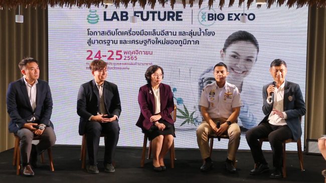 ที่โรงแรมแอดลิบ จ.ขอนแก่น นายธีรยุทธ์ ลีลาขจรกิจ ผู้อำนวยการ บริษัท เเอดลิบ เเมเนจเม้นท์ จำกัด พร้อมด้วย นายทวีสันต์ วิชัยวงศ์ ประธานสภาอุตสาหกรรม จ.ขอนแก่น และ นายชาญณรงค์ บุริสตระกูล ประธานหอการค้า จ.ขอนแก่น ร่วมกันแถลงข่าว การจัดกิจกรรมงานLAB Future & BIO Expo 2022งานแสดงเทคโนโลยี เครื่องมือและบริการทางห้องปฏิบัติการทางวิทยาศาสตร์ และงานนวัตกรรมและเทคโนโลยีชีวภาพ เพื่อการพัฒนาและการลงทุนในภูมิภาคตะวันออกเฉียงเหนือและกลุ่มประเทศลุ่มน้ำโขง ท่ามกลางความสนใจจากนักธุรกิจและนักลงทุนเข้าร่วมรับฟังจำนวนมาก