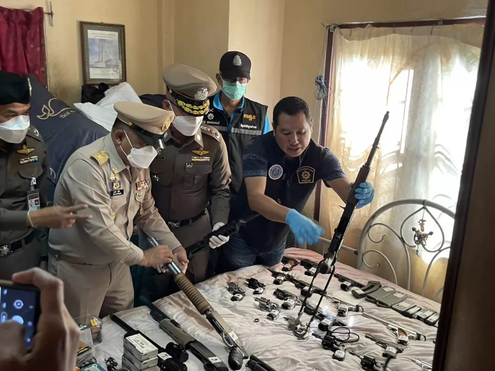 ทั้งนี้ภายในบ้านพักพบนาย GARETH A. DAVIES อายุ 65 ปี สัญชาตินิวซีแลนด์ จากนั้นได้แสดงหมายค้น เพื่อเข้าตรวจสอบสิ่งผิดกฎหมาย จากการตรวจค้นพบอาวุธปืนยาว 7 กระบอก (อาวุธสงคราม จำนวน 2 กระบอก แบ่งเป็น อาก้า และ M16) อาวุธปืนสั้น 19 กระบอก วัตถุระเบิด 11 ลูก และเครื่องกระสุนปืนขนาดต่างๆจำนวนมาก จึงควบคุมตัวไปสอบสวนขยายผลพร้อมกับแจ้งข้อหา “มีอาวุธปืน วัตถุระเบิดและเครื่องกระสุนปืนไว้ในครอบครองโดยไม่ได้รับอนุญาต” ส่งพนักงานสอบสวน สภ.กะทู้ ดำเนินการตามกฎหมายต่อไป