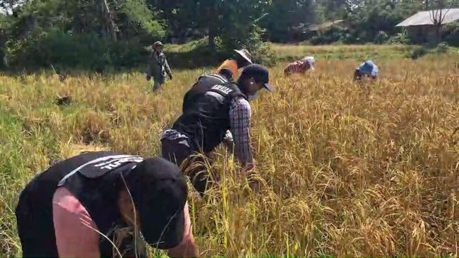 นางสมใจ กล่าวว่า รู้สึกดีมาก เมื่อมีคนมาช่วย ช่วงนี้ข้าวออกรวงและสุกมาหลายวันแล้ว ขาดคนงาน มีแต่ญาติพี่น้อง และค่าแรงแพงมากช่วงนี้ ทุกคนในหมู่บ้านก็ไปเก็บเกี่ยวข้าวของตนเอง พอมีเจ้าหน้าที่มาช่วยแบ่งเบาภาระรู้สึกดี อยากให้มีแบบนี้ทุกปี ขอขอบคุณเจ้าหน้าที่ทหารที่เข้ามาช่วย