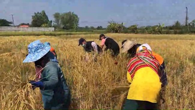 เมื่อวันที่ 10 พ.ย. 65 ผู้สื่อข่าวรายงานว่า ที่บริเวณ ทุ่งนา บ้านนาโป่ง ต.นาโป่ง อ.เมืองเลย จังหวัดเลย ทุ่งนา ของ นางอำไพ โสวรรณ์ มีชาวบ้านและญาติร่วมกันเกี่ยวข้าว ในยุคข้าวยากหมากแพงหาคนงานยาก ขาดคนงาน ต้องเร่งช่วยกันเกี่ยวข้าว กลัวข้าวจะเสียหายหลังผ่านช่วงเกี่ยวไปหลายนวันแล้ว