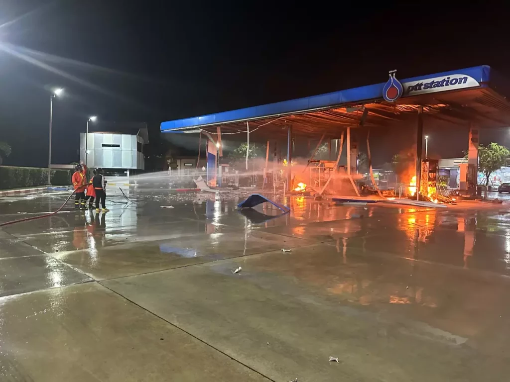 จากการสอบสวน ทราบว่า ก่อนเกิดเหตุปั๊มดังกล่าวได้เปิดให้บริการตามปกติ มีประชาชนเข้ามาใช้บริการจำนวนมาก ปรากฏว่าขณะที่พนักงานปั๊มกำลังให้บริการเติมน้ำมันให้กับลูกค้าได้มีคนร้าย 2 คนขับขี่รถจักรยานยนต์ขับเข้ามาจอดบริเวณหัวจ่ายน้ำมัน พร้อมตะโกนบอกว่ามีระเบิด ก่อนที่คนร้ายที่นั่งซ้อนท้ายลงจากรถแล้วชักอาวุธปืนไม่ทราบชนิดยิงขึ้นฟ้าจำนวน 10 นัด ทำให้ทั้งพนักงานและประชาชนที่อยู่ภายในปั๊มต่างวิ่งหนีตายไปออกจากปั๊มและเร่งขับรถออกจากปั๊ม จากนั้นคนร้ายจึงนำระเบิดแสงเครื่องบรรจุในถังแก๊สปิกนิกวางไว้บริเวณหัวจ่ายก่อนจะเร่งเครื่องหลบหนี ประมาณ 10 นาที เกิดระเบิดขึ้นทันที เสียงดังสนั่นหวั่นไหวโชคดีที่ไม่มีใครได้รับบาดเจ็บหรือเสียชีวิต