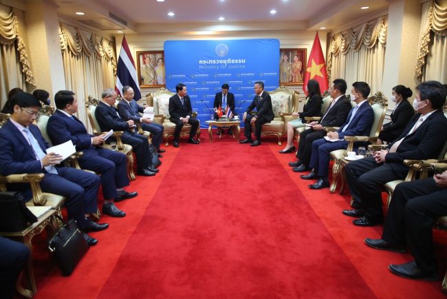 วันพฤหัสบดีที่ 17 พฤศจิกายน 2565 นายสมศักดิ์ เทพสุทิน รัฐมนตรีว่าการกระทรวงยุติธรรม เป็นประธานในการต้อนรับและหารือข้อราชการกับผู้แทนจากสาธารณรัฐสังคมนิยมเวียดนาม คือนายเล ถั่น ลอง รัฐมนตรีว่าการกระทรวงยุติธรรมเวียดนาม และพลตำรวจโท เล ก๊วก หุ่ง รัฐมนตรีช่วยว่าการกระทรวงความมั่นคงสาธารณะเวียดนาม พร้อมด้วย นางพงษ์สวาท กายอรุณสุทธิ์ ปลัดกระทรวงยุติธรรม โดยนายวิชัย ไชยมงคล เลขาธิการคณะกรรมการป้องกันและปราบปรามยาเสพติด (เลขาธิการ ป.ป.ส.) มอบหมายให้นายปิยะศิริ วัฒนวรางกูร รองเลขาธิการ ป.ป.ส. เข้าร่วมกับนายสิทธิ สุธีวงศ์ รองอธิบดีกรมราชทัณฑ์ ณ สำนักงาน ป.ป.ส. (ดินแดง)