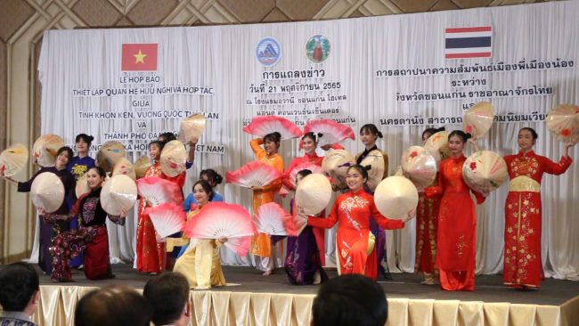 เมื่อวันที่ 21 พ.ย.2565 ที่โรงแรมอวานี ขอนแก่นแอนด์ คอนเวนชั่น เซ็นเตอร์ นายไกรสร กองฉลาด ผวจ.ขอนแก่น พร้อมด้วย นายชู ดุ๊ก ดง (Chu Duc Dung) กงสุลใหญ่สาธารณรัฐสังคมเวียตนามประจำจังหวัดขอนแก่น ร่วมแถลงข่าวผลความสำเร็จการลงนามความร่วมมือสถาปนาเมืองพี่เมืองน้องระหว่าง จ.ขอนแก่น ราชอาณาจักรไทย กับ นครดานัง สาธารณรัฐสังคมนิยมเวียตนาม โดยได้มีการลงนามความร่วมมือแบบทวิภาคีก่อนการประชุมผู้นำเขตเศรษฐกิจเอเปค ครั้งที่ 28 ซึ่งกำหนดจัดการประชุมขึ้นที่กรุงเทพฯระหว่างวันที่ 14-19 พ.ย.ที่ผ่านมา ท่ามกลางความสนใจจากนักธุรกิจ นักลงทุน คนไทยเชื้อสายเวียตนาม และหน่วยงานภาครัฐและภาคเอกชน รวมทั้งสื่อมวลชนเข้าร่วมรับฟังการแถลงข่าวในครั้งนี้กันอย่างเนืองแน่น