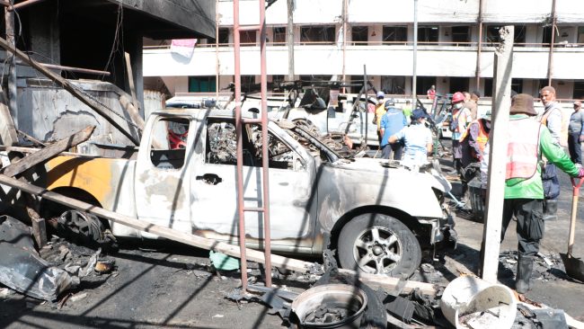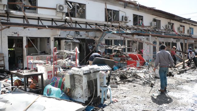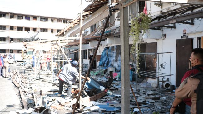โดยวันนี้(23 พ.ย.65) เจ้าหน้าที่ระดมกำลังเร่งมือในการเคลื่อนย้ายซากรถยนต์ เเละรถจักรยานยนต์หลายสิบคัน ที่ได้รับความเสียหายจากเหตุระเบิดในรถยนต์ หรือ คาร์บอมบ์ออกจากเเฟลตตำรวจ สภ.เมืองนราธิวาสเเละเก็บกวาดซากความเสียหายจากเเรงอัดของระเบิดภายในเเฟลต คืนสภาพตามปกติ อย่างไรก็ตาม อนุภาพของระเบิดคาร์บอมบ์ที่รุนเเรง ทำให้ร่องรอยความเสียหาย โดยเฉพาะบริเวณห้องพักของเจ้าหน้าที่ประมาณ 70 ครอบครัว บริเวณชั้น 1 เเละชั้น 2 ที่เสียหายเกือบทั้งหมด