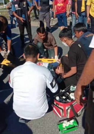 นครศรีธรรมราช-ระทึกเมืองคอน หนุ่มชุมพร คลั่งชักปืนขู่เด็กปั้ม ผู้การฯนครศรีฯ ปิดล้อม เจรจา 5 ชั่วโมงไม่เป็นผล ส่งทีมล่อให้ปรากฎตัว อีกทีมบุกชาร์จ แต่เหิมยิงใส่ตำรวจ สไนเปอร์คุมเชิงลั่นไก 1 นัด เจาะไหล่สิ้นฤทธิ์ ค้นรถ พบยาบ้า-ไอซ์ เพียบ