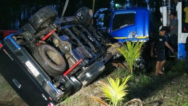 ที่เกิดเหตุพบสระน้ำกว้าง 10 เมตร ยาว10 เมตร พบชิ้นส่วนรถกระจายเกลื่อนและร่องรอยล้อเสียหลักวิ่งลงไปในสระน้ำ มีรองเท้าผู้หญิงลอยอยู่ 1 คู่ และรถจมอยู่ในน้ำเห็นแต่หลังคา ทีมนักประดาน้ำลงไปผูกดึงลากขึ้นมา โดยพบเป็นรถกระบะอีซูซุ 4 ประตู สีดำ ทะเบียน กบ 1151 นครราชสีมา ภายในรถพบศพชาย-หญิง สภาพเสียชีวิตมาแล้วหลายวัน ทราบต่อมาฝ่ายชายทำงานเป็นผู้จัดการฟาร์มหมู ส่วนฝ่ายหญิงทำงานเป็นเจ้าหน้าที่อยู่อบต.
