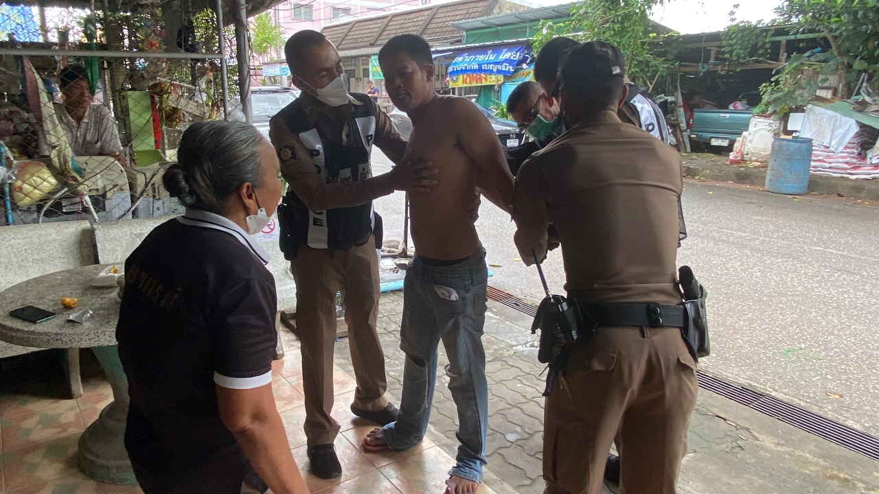 พบ นายพงศ์ศักดิ์ (ขอวสงวนนามสกุล) อายุ 35 ปี นั่งอยู่หน้าบ้านพูดเอะอะโวยวายอยู่คนเดียว บนโต๊ะยังมีขวดเหล้า ฟอยล์สำหรับห่อยาบ้า มีรอยยาบ้าติดอยู่ ทันทีที่เห็นตำรวจ เจ้าตัวก็โวยวายว่าไม่ได้ทำอะไรผิด จะมาจับทำไม ตำรวจพยายามพูดคุยให้สงบสติอารมณ์ บอกไปว่าไม่ได้จะมาจับ แค่มาห้ามไม่ให้ก่อเรื่อง