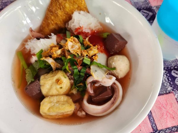 และ อีกเมนูเด็ด ของร้านตาแป๊ะ “ก๋วยเตี๋ยว” บ้านนอกที่รสจัดจ้าน-แซ่บ อัดแน่น ล้นชามคือ ก๋วยเตี๋ยวต้มยำ ที่ในชาม แน่นเครื่อง ไม่ว่า ถั่วงอก ฮือก้วยลวกสุก,ลูกชิ้นปลาลวกสุก ,ตับหมูลวกสุก,หมูสับรวน ,สันคอหมูลวกสุก ,ไข่ออนเซ็น 1 ฟอง น้ำตาลทราย ,น้ำมะนาว ,ถั่วลิสงคั่วบด ,พริกแห้งคั่วป่น ,พริกเผา ,เกี๊ยว ,กระเทียมเจียว ,ผักชี นั้น