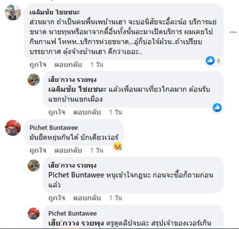 ที่นี้พอผู้ดูแลมาเจอมาชี้หน้าว่าพวกเราว่าที่พักห้ามสั่งอาหารเข้ามา คุณสั่งอาหารเข้ามาแบบนี้ผมเสียเปรียบมั้ย เพราะคุณมาใช้แก๊สกระป๋องของที่พัก เตาของที่พัก เราก็พยายามชี้แจงว่าเราได้ขออนุญาตและทักบอกแอดมินแล้ว ผู้ดูแลบอกว่าตอนนั้นที่แอดมินโทรมาผมไม่ได้รับสาย ไม่รู้ว่าจะสั่งหมูกระทะมา เราก็ชี้แจงว่าเรามาครั้งแรก คุณควรจะกลับไปคุยกับแอดมินคุณก่อนมั๊ยก่อนที่จะมาต่อว่าลูกค้าว่า เราได้ขออนุญาตก่อนสั่งเข้ามาแล้ว แต่เค้าก็ไม่เข้าใจ ตอนนั้นกลัวมากๆๆ เราเลยแจ้งให้ตำรวจมาเคลียร์ และพวกเรา 3 คนต้องออกจากที่พักมาตอน 21.50 เพื่อมาหาที่นอนใหม่ เพราะเรื่องหมูกะทะ และยอมเสียค่าที่พัก พวกเราขอแค่ความเห็นใจคือมันมืดมากแล้วไม่ให้เราสั่งอาหารเข้ามาทาน ที่พักก็ควรจะซัพพอร์ตให้สมกับราคาที่ลูกค้าจ่าย นั่งเครื่องบินมาตั้งไกล ขับรถมา 10 ชั่วโมง เพื่อให้เรามาอดข้าวเพื่อรอพรุ่งนี้เช้า #เสียความรู้สึกมาก # การบริการแย่ห่วยแตกสุดๆ # ถ้าที่พักมาเห็นควรจะอบรมพนักงานดูแลให้บริการดีกว่านี้ ถ้ารับฟังข้อตำหนิของลูกค้าไม่ได้ไม่สมควรมาทำงานบริการ เพราะเราก็ค้าขายไม่เคยทำกับลูกค้าแบบนี้เลย #ขอบคุณตำรวจสภบ่อเกลือที่มาไกล่เกลี่ยให้นะครับ”