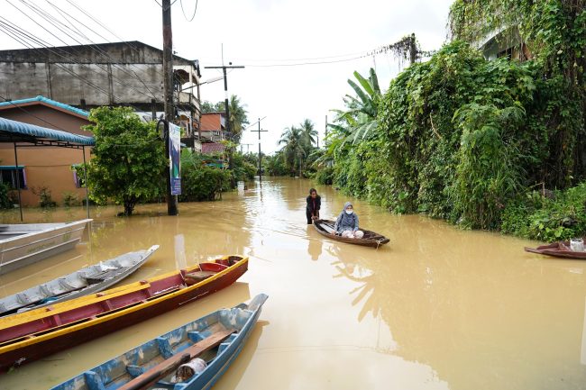 วันนี้( 20ธค.65) จากภาวะฝนตกหนักในพื้นที่จังหวัดชายแดนภาคใต้สะสมมาเป็นเวลายาวนานทำให้เกือบทุกพื้นที่มีสภาพดินอิ่มน้ำ เมื่อเกิดฝนตกหนักอย่างต่อเนื่องอีก2วัน อย่างไม่ลืมตา ทำให้ในพื้นที่เกิดภาวะน้ำท่วมขังฉับพลันส่งผลกระทบเป็นวงกว้างในหลายพื้นที่บ้านต้องมีสภาพจมน้ำมิดหลังคา ถนนถูกตัดขาดไม่สามารถสันจรกับโลกภายนอกได้ หลายพื้นที่เกิดถลม ดินภูเขาไสลต์บ้านพังเสียหาย ต้นไม้ค้นล้มทับบ้านเรือน ร้านค้า ซึ่งในหลายพื้นที่ก็ยังคงเรียกร้องร้องขอการเยียวยาจากภาครัฐ โดยเฉพาะปัญหาเร่งด่วนคือปัจจัยข้าวของอาหารแห้งเพื่อประทันท้องให้กับคนในครอบครัว ที่ยังคงได้ยังไม่ทั่วถึง