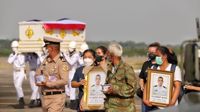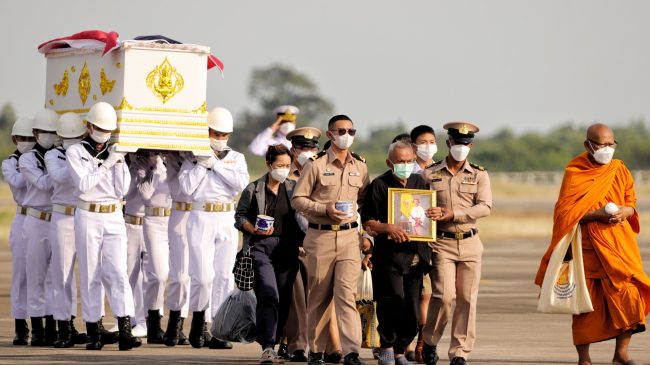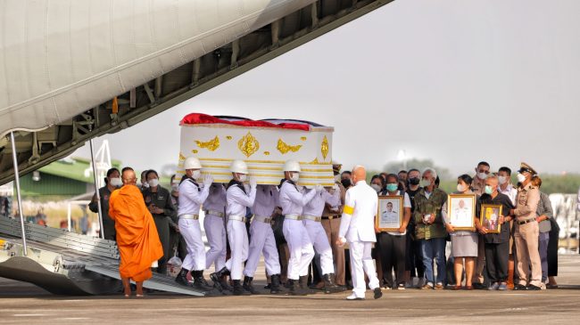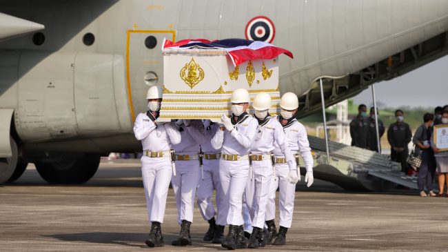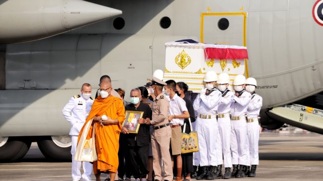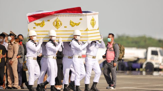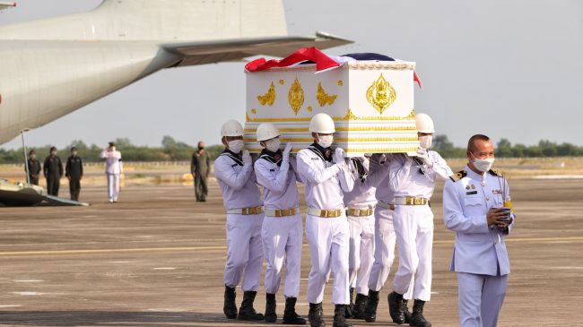 กองทัพเรือ จัดพิธีรับศพอย่างสมเกียรติ 6 กำลังพล เหตุเรือหลวงสุโขทัยอับปาง