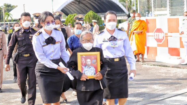 เมื่อเวลา 15.20 น. วันที่ 22 ธ.ค.2565 ที่สนามบินอู่ตะเภา กองการบินทหารเรือ กองเรือยุทธการ ต.พลา อ.บ้านฉาง จ.ระยอง พลเรือเอก เชิงชาย ชมเชิงแพทย์ ผู้บัญชาการทหารเรือ พร้อมด้วย นายธวัชชัย ศรีทอง ผู้ว่าราชการจังหวัดชลบุรี ข้าราชการทหารกองทัพเรือ ผู้แทนองค์กรปกครองส่วนท้องถิ่น ครอบครัว และญาติ ได้เดินทางมารอรับศพ 6 กำลังพล จากเหตุการณ์เรือหลวงสุโขทัยอับปาง ที่ อำเภอบางสะพาน จ.ประจวบคีรีขันธ์ เมื่อวันที่ 18 ธันวาคมที่ผ่านมา โดยมีกองทหารเกียรติยศ รับอย่างสมเกียรติ