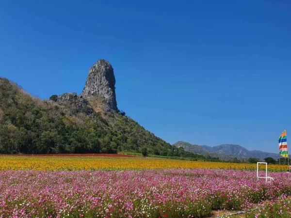 ดอกทานตะวัน คอสมอส และข้าวฟ่าง ดอกไม้ 3 สี 2 แปลง ที่เกษตรกรพื้นที่ จ.ลพบุรี ได้ปลูกเอาไว้กำลังผลิบานรอต้อนรับนักท่องเที่ยวมาเยี่ยมชมคู่ทิวทัศน์เขาจีนแล คาดจะอยู่อีก 15 วันถึงต้นปีใหม่ 2566