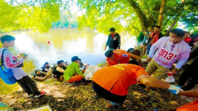 ญาติของนายลัดฯ ผู้สูญหาย บอกว่า นายลัดฯ เป็นคนว่ายน้ำเก่ง และมักจะออกหาหอยจับปลาในบ่อน้ำอยู่เป็นประจำ ซึ่งก่อนเกิดเหตุเวลาประมาณ 10.00 น. วันที่ 1 ม.ค.66 ได้บอกกับญาติที่มาฉลองปีใหม่ร่วมกันว่า จะลงไปดำน้ำหาหอยในบ่อ ดำผุดดำว่ายไปสักระยะ แต่ห่างออกจากฝั่งไปเรื่อยๆ ประมาณ 100 เมตร จนถึงกลางบ่อ แล้วจู่ๆ นายลัดฯ ก็ดำหายไปในน้ำ ไม่โผล่ขึ้นมาเหนือน้ำ ซึ่งนานผิดปกติ ทางญาติจึงพากันตะโกนเรียก และพยายามมองหาแต่ก็ไม่เห็นตัว และไม่มีใครกล้าดำน้ำไปค้นหา เพราะสภาพอากาศหนาว และน้ำในบ่อเย็นจัด พยายามเดินมองหากันอยู่สักพัก ไม่เห็นร่างของนายลัดฯ จึงรีบโทร.แจ้งเจ้าหน้าที่ตำรวจให้ทราบ เพื่อประสานกู้ภัยฯ ให้มาช่วยค้นหาดังกล่าว