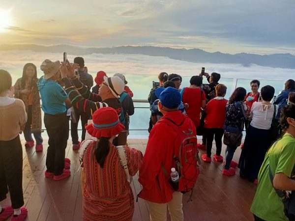 เมื่อวันที่ 2 ม.ค.66 นักท่องเที่ยวทั้งไทยและมาเลเซียจำนวนมากต่างหลั่งไหลเดินทางมาท่องเที่ยวก่อนเดินทางกลับชมแสงแรก ปี 2566 พร้อมสัมผัสรับลมหนาวในวันขึ้นปีใหม่ที่สกายวอล์ค ทะเลหมอกอัยเยอร์เวง ต.อัยเยอร์เวง อ.เบตง จ.ยะลา โดยมีนักท่องเที่ยวต่างเดินทางออกจากตัวเมืองเบตงตั้งแต่เวลา 05.00 น. ต่างเข้าคิว ต่อแถว รอขึ้นสกายวอล์คแห่งนี้ เพื่อชมความงามของทะเลหมอกอันแสนงดงามอลังการ แบบพาโนรามา 360 องศา และชมพระอาทิตย์ขึ้นยามเช้ารับแสงแรกยามเช้าตรู่ของวัน พร้อมสัมผัสสูดอากาศโอโซนบริสุทธิ์ ในอุณหภูมิ 19 องศา และชมทิวทัศน์ของผืนป่าบาลา -ฮาลา ทะเลสาบเขื่อนบางลาง รวมถึงสามารถมองทิวทัศน์ไปไกลได้ถึงประเทศมาเลเซีย นักท่องเที่ยวต่างก็ใช้โทรศัพท์มือถือ ถ่ายภาพ เซฟฟี่ เก็บรูปความสวยงามไว้เป็นที่ระลึกพร้อมอวดลงในโซเชียลมีเดีย โดยมีเจ้าหน้าที่ป่านันทนาการทะเลหมอกอัยเยอร์เวง และ เจ้าหน้าที่ ตชด.ชป.ทะเลหมอก ร่วมกันจัดระเบียบและคัดกรองนักท่องเที่ยวให้เป็นไปตามมาตรการและมาตรฐานของการควบคุมโรคดควิด-19