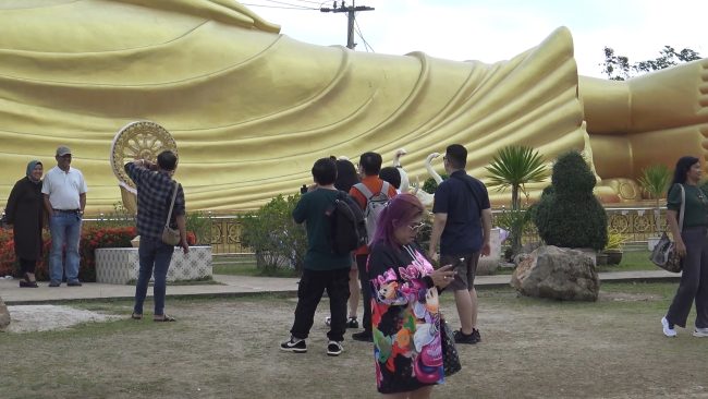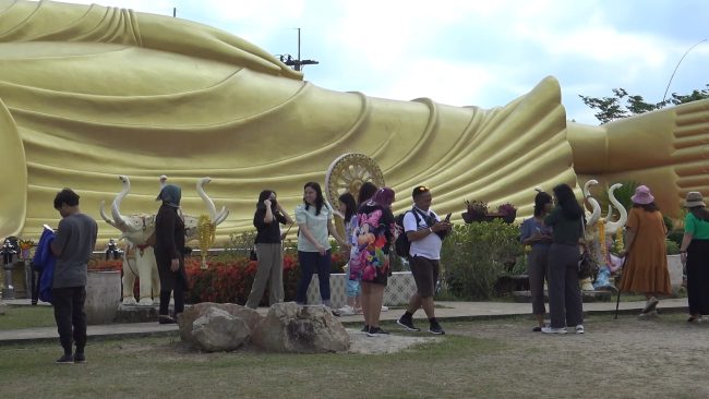 “วันสุดท้าย” หยุดยาวเทศกาลปีใหม่ “เกาะยอ”คึกคัก นักท่องเที่ยวที่เดินทางมาท่องเที่ยวที่ จ.สงขลา และผู้ที่กลับมาเยี่ยมครอบครอบครัว แวะกราบไหว้พระนอนปางปรินิพพานองค์ใหญ่ที่สุดในประเทศไท